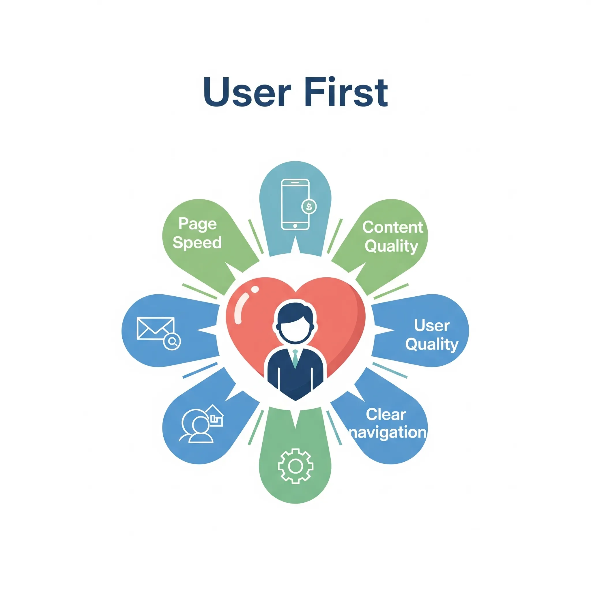 - “ผู้ใช้งาน” มาก่อน “Google” (User First!): สร้างเนื้อหาที่มี “คุณค่า”, ทำให้เว็บ “ใช้งานง่าย” >> แล้ว Google จะ “รัก” คุณตามมาเอง!
